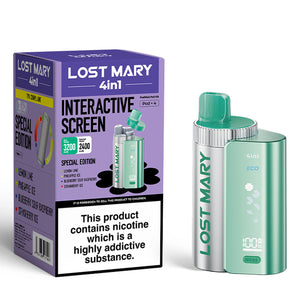 The Lost Mary 4in1 2400 Pod Kit offers a new and innovative way to enjoy your favorite disposable vape flavours. Equipped with a 950mAh battery, this kit comes with four 2ml pre-filled pods of flavoured e-liquid, providing up to 3200 puffs.